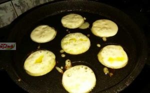 Heat the oil in a unniyappam pan(uniiyappachatti), once oil start bubbling, pour the batter into each hole.
