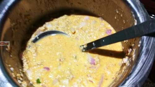 Set aside this mixture for 5 minutes, pour more water if required to make right consistency batter.